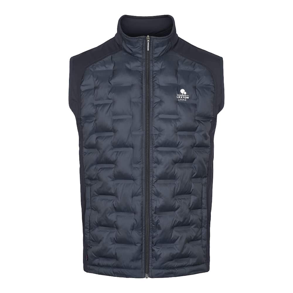 Varm og vindtæt golfvest med strækbare paneler og quiltet front/ryg. Ideel til kølige dage på golfbanen og andre udendørs aktiviteter.